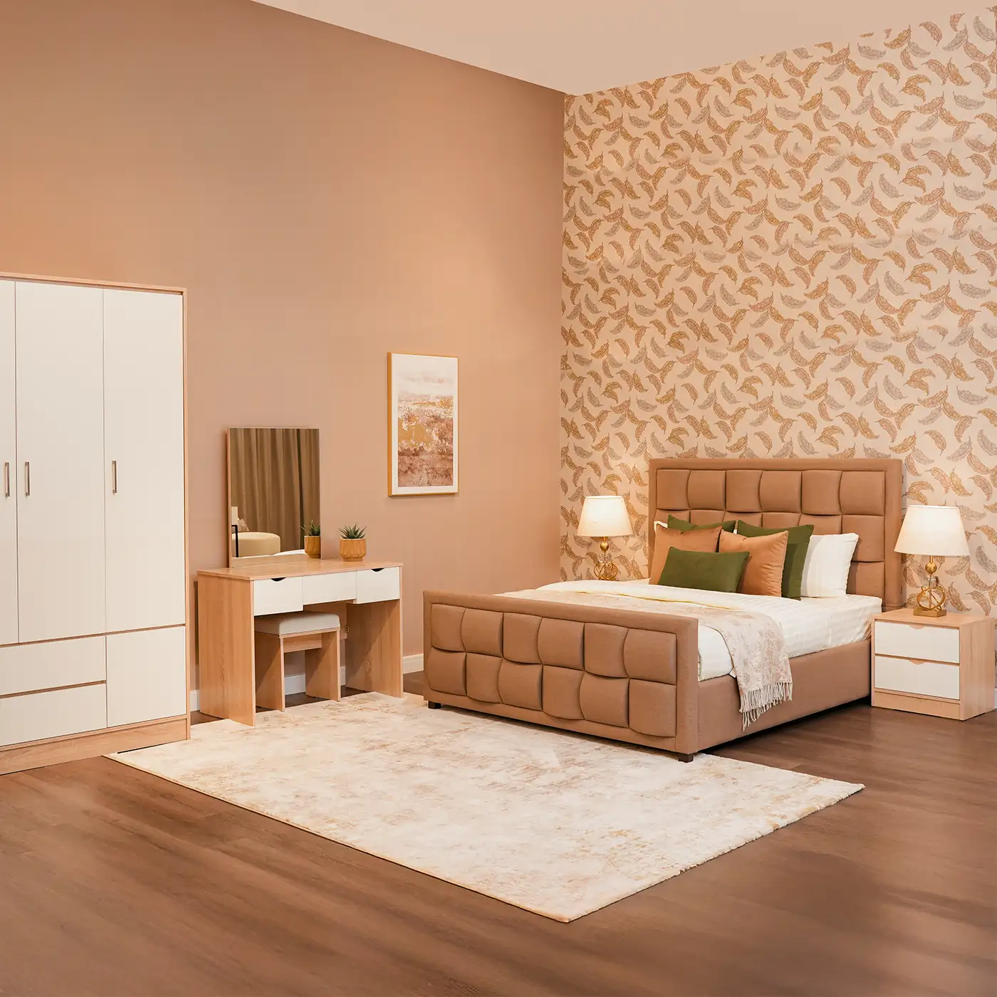 With the Ivory 5-Piece Bedroom Set, your bedroom will revel in elegance and sophistication. Never miss this 3D tufted bed design, two extra nightstands, a dressing table with a stool of the same design and finishes, and a 3-door wardrobe. Style up your home and make your sleeping den unique.