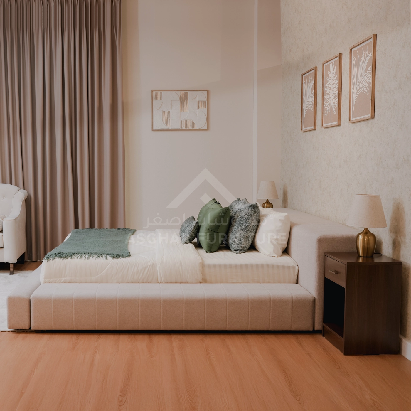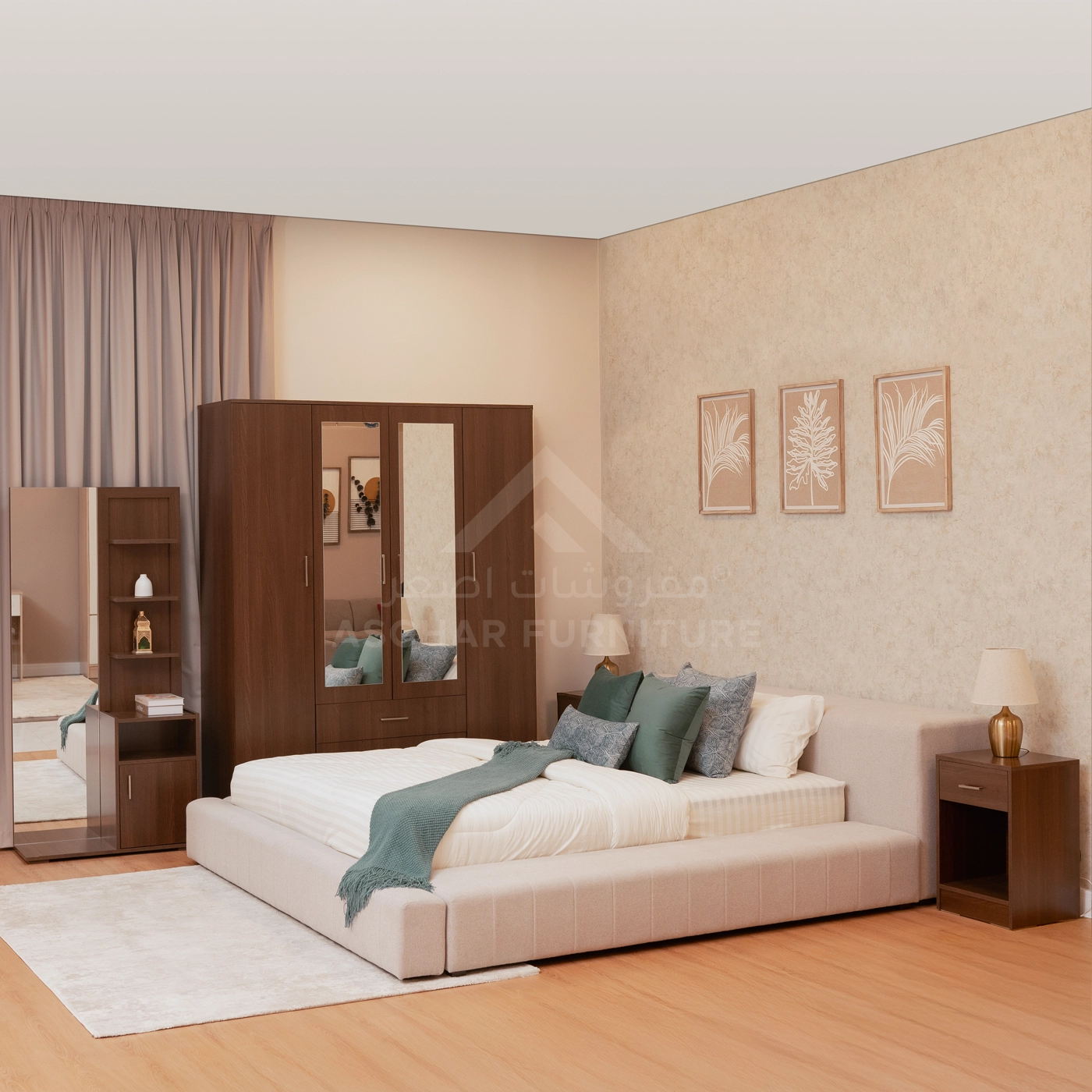 Transform your bedroom into a haven where you ensconce yourself in style by investing in this all-around bedroom set with its high-end upholstered platform bed, two amazing nightstands, a full-mirror dresser, and a mirrored-door wardrobe to brighten up your space and make it a space of elegance and comfort.