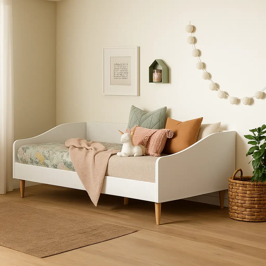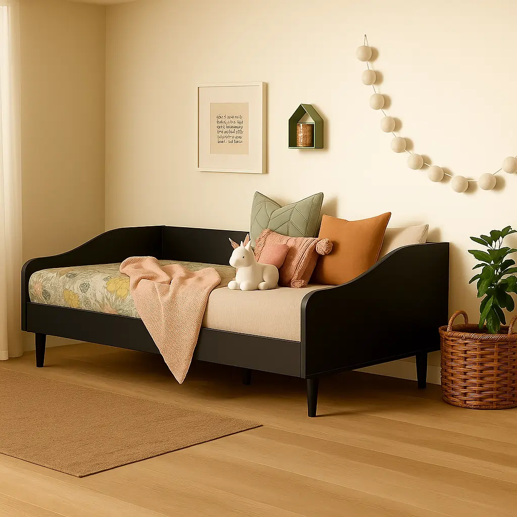 Transform any space into a cozy retreat with our charming daybed, measuring 205cm in length, 95cm in width, and 80cm in height. Designed with comfort and style in mind, it features a sleek and elegant frame that complements any decor. Perfect for lounging or accommodating guests, this daybed offers a versatile solution for smaller rooms or multifunctional spaces. Crafted with quality materials and attention to detail, it combines functionality with a touch of modern sophistication.