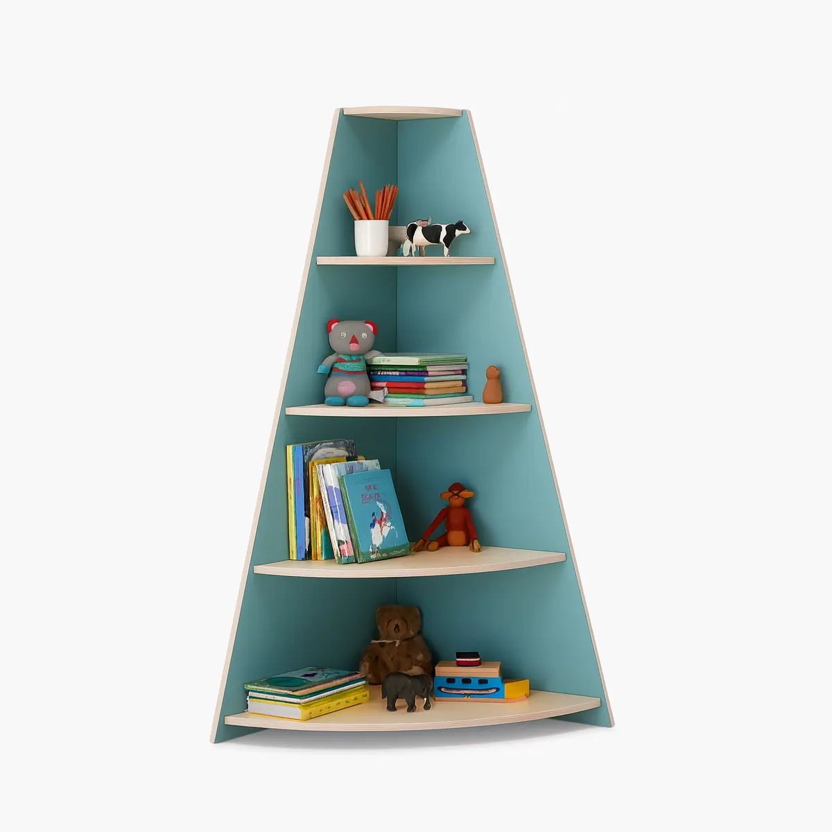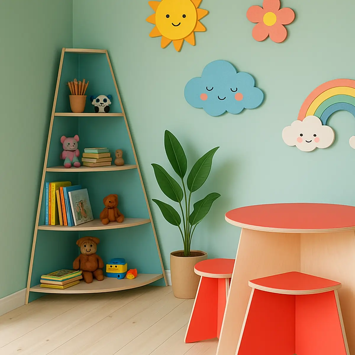 The TriStack Kids Rack features a triangular, space-saving design with stacked shelves that neatly organize books, toys, and decor. Its birch wood finish and soft-coloured backing bring a modern, kid-friendly touch to playrooms, bedrooms, and reading corners.