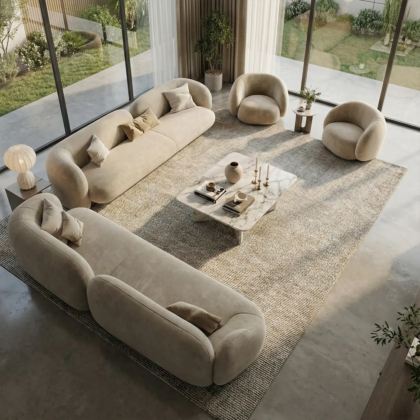 The Alya Majlis by Asghar Furniture expresses contemporary elegance and elevated comfort. Designed for luxury UAE homes, it features plush seating, curved forms, and soft neutral tones; perfect for refined majlis spaces, offering premium comfort, modern craftsmanship, and a welcoming atmosphere for intimate gatherings.