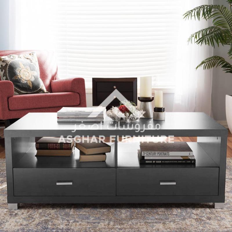 Bring a chic element into your home with this 2-drawer coffee table by Asghar Furniture. A large surface area offers a comfortable space to put your essentials, while the spacious lower drawers and open shelves provide plenty of storage space.