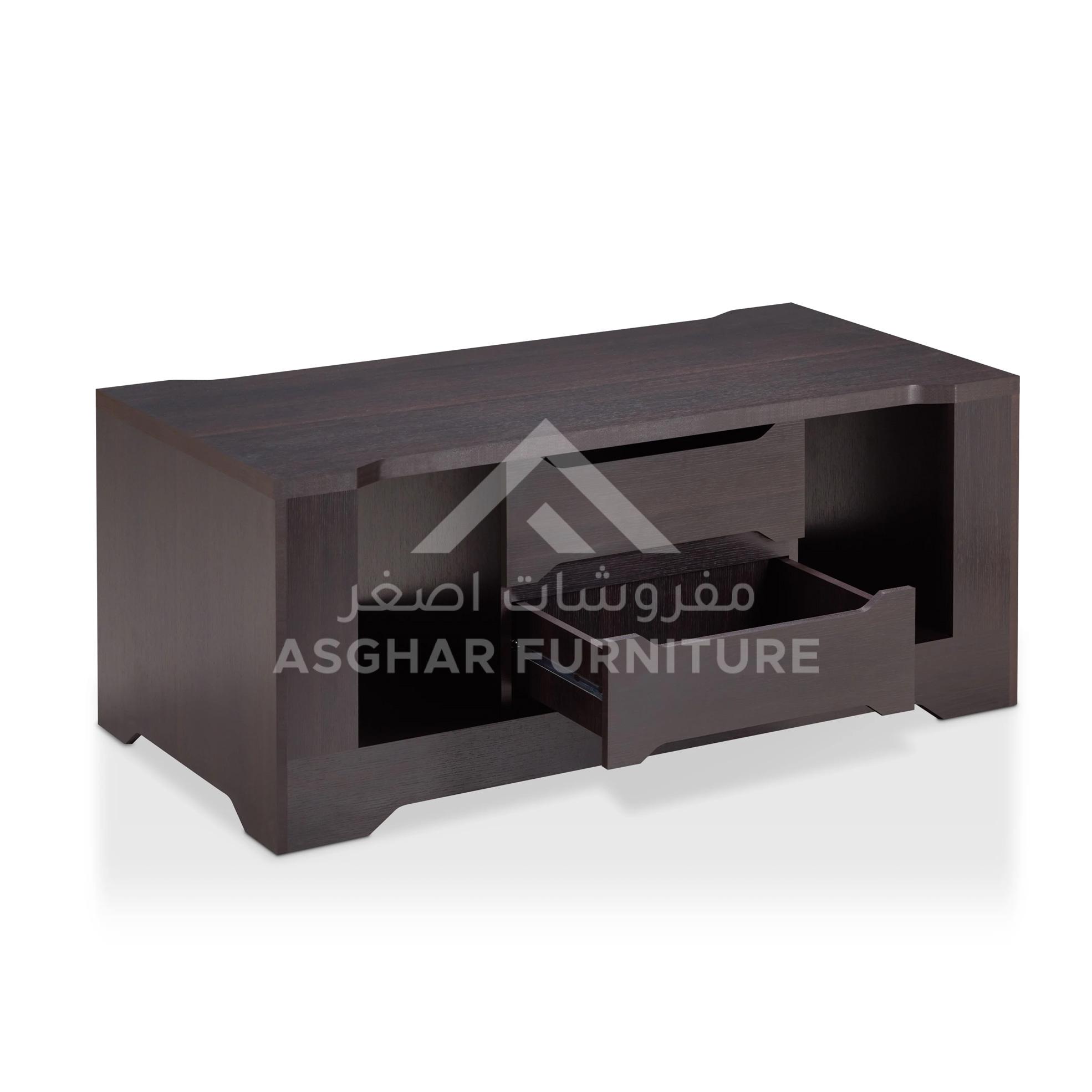 Whether in need of hiding messy clutter or displaying prized belongings this Markus two drawer coffee table has the necessary drawers and shelves. The clean linear lines are paired with subtle angular accents for a sleek design with modern inspiration.