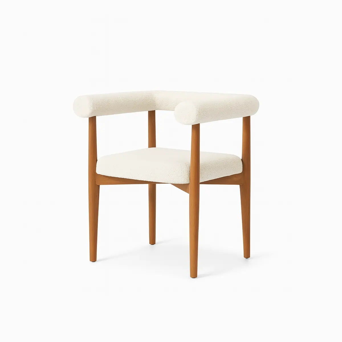 The Seraphina Modern Dining Chair brings refined luxury to any interior with its sculptural boucle upholstery and elegant wooden frame. Designed for contemporary, minimalist, and upscale dining spaces, it offers plush comfort, warm texture, and a graceful silhouette that elevates everyday dining with effortless sophistication.