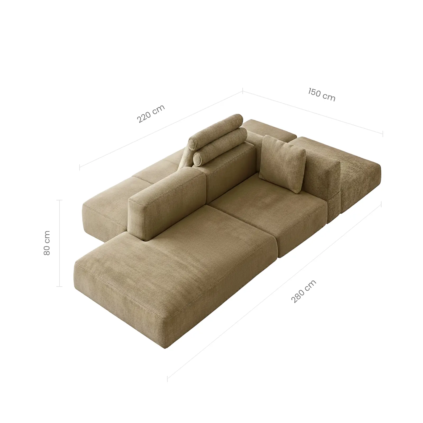 - Overall Size: 280cm (W) x 150cm (D) x 220cm (W) x 80cm (H)