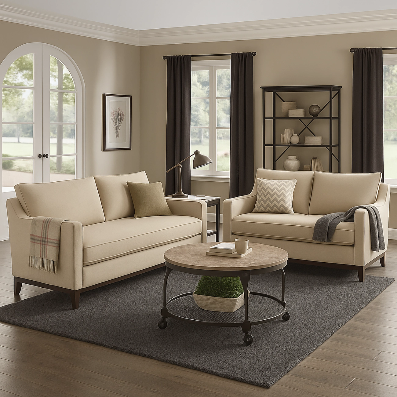 Bring modern elegance to your space with this Caleb five-seater sofa set. The fabric adds textured detailing, making it warm and cozy, while a semi-soft seat adds just the right amount of personal support.